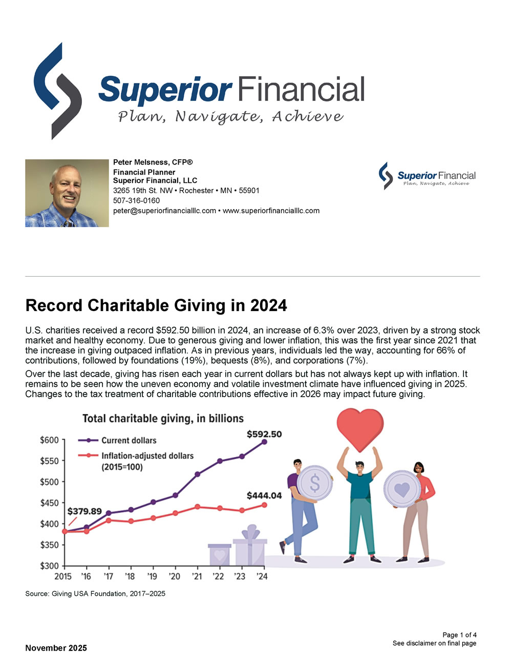 All written content on this site is for information purposes only. Opinions expressed herein are solely those of Superior Financial, LLC, unless otherwise specifically cited. Material presented is believed to be from reliable sources and no representations are made by our firm as to another parties' informational accuracy or completeness. All information or ideas provided should be discussed in detail with an adviser, accountant or legal counsel prior to implementation.