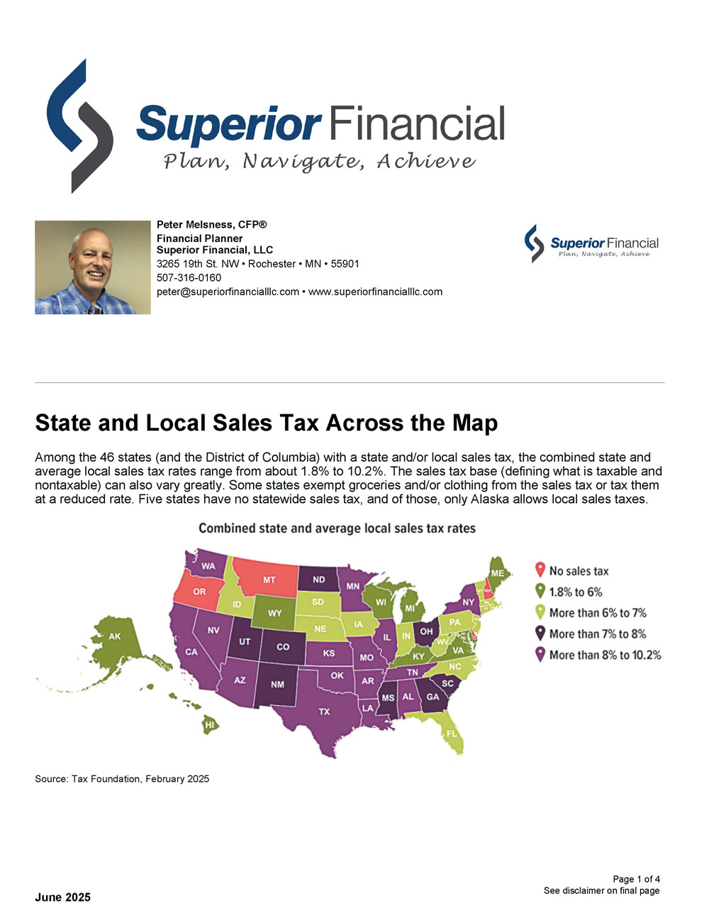 This website may provide links to others for the convenience of our users. Our firm has no control over the accuracy or content of these other websites. Investment advisory services are offered through Superior Financial, LLC, an investment adviser domiciled in and registered with the State of Minnesota. The presence of this website on the Internet shall not be directly or indirectly interpreted as a solicitation of investment advisory services to persons of another jurisdiction unless otherwise permitted by statute.